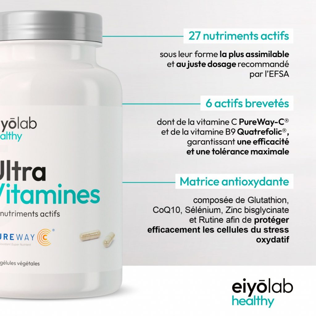 - UltraVitamines Eyolab est une formule multivitaminée haut de gamme, innovante, axée sur la synergie et la biodisponibilité des actifs.